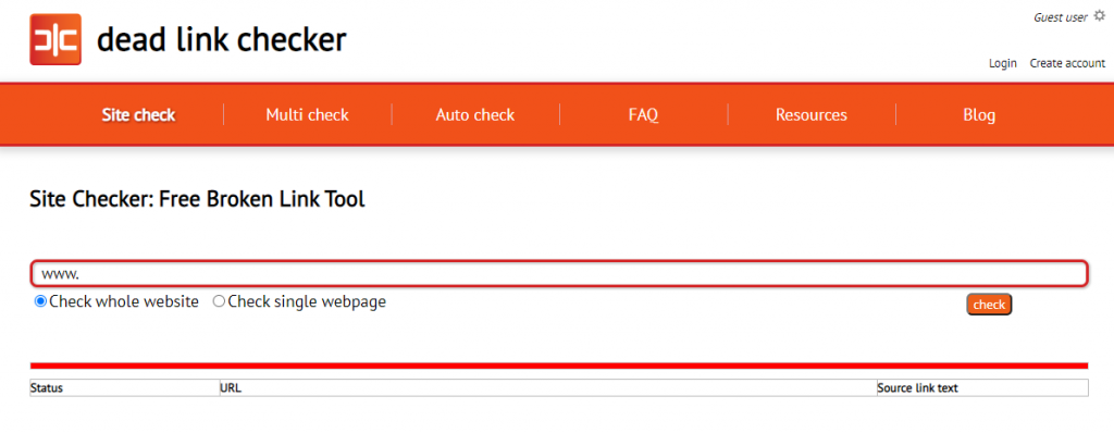 - Dead link heeft drie methoden van het proces, namelijk Site Check, Multi Check, Auto Check.