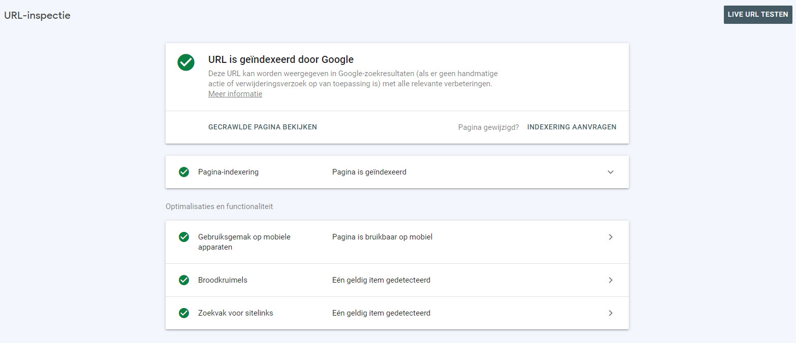 De URL-inspectietool geeft je inzicht in jouw geïndexeerde pagina’s.